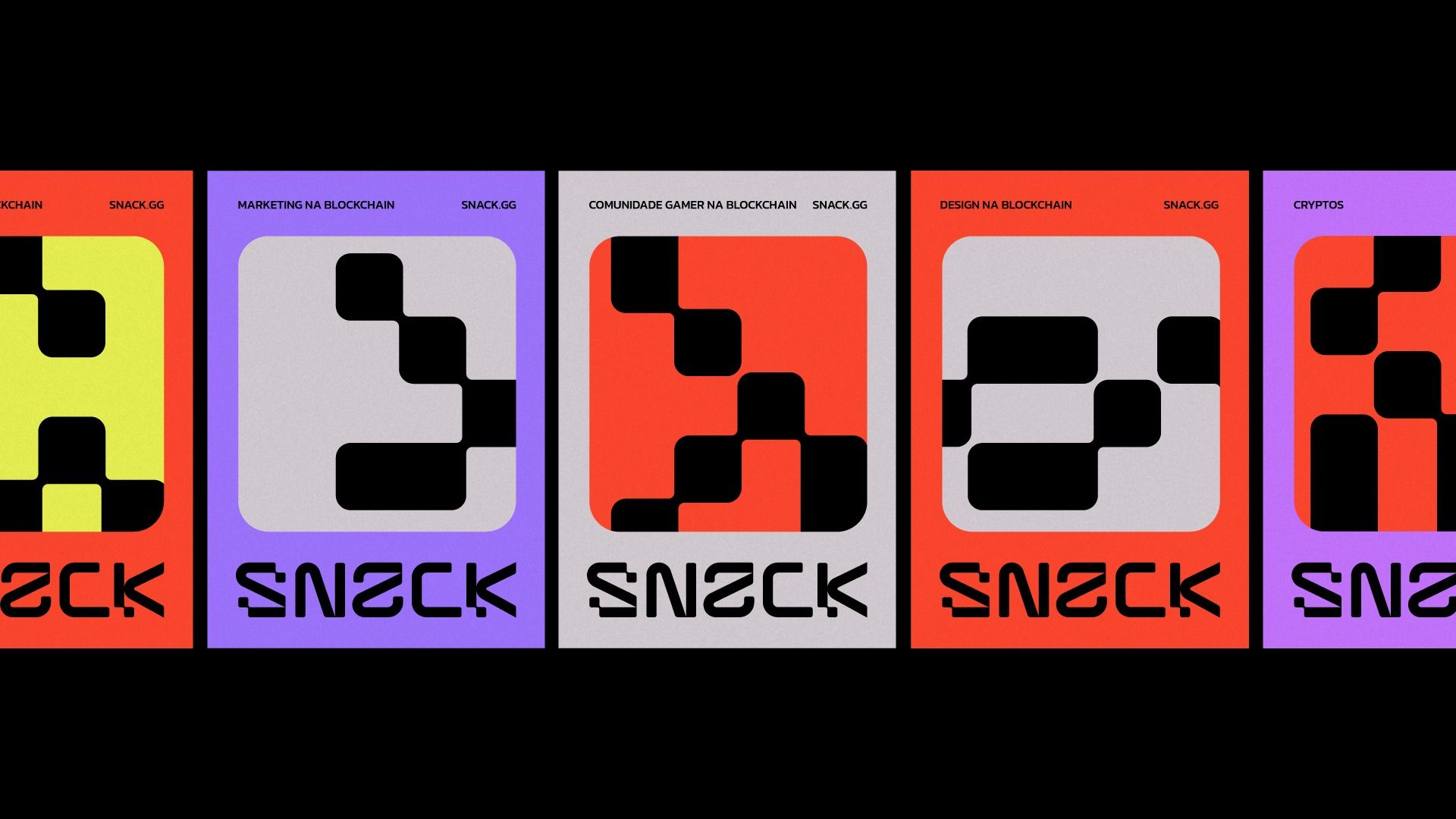 This design utilizes a modular, horizontal strip layout characterized by bold color blocking and clean geometric patterns. The visual language is modern and digital, employing high contrast between vibrant backgrounds and stark black elements to create a structured yet energetic feel.