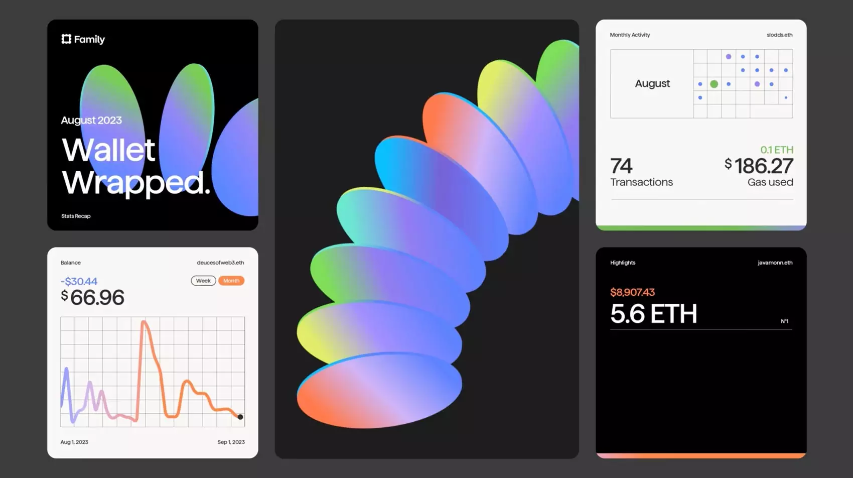 The design presents a clean, modern, and professional interface style, utilizing a muted color palette with pops of vibrant green. The layout is card-based and organized, suggesting a focus on clear, digestible information for a fintech or tech audience.