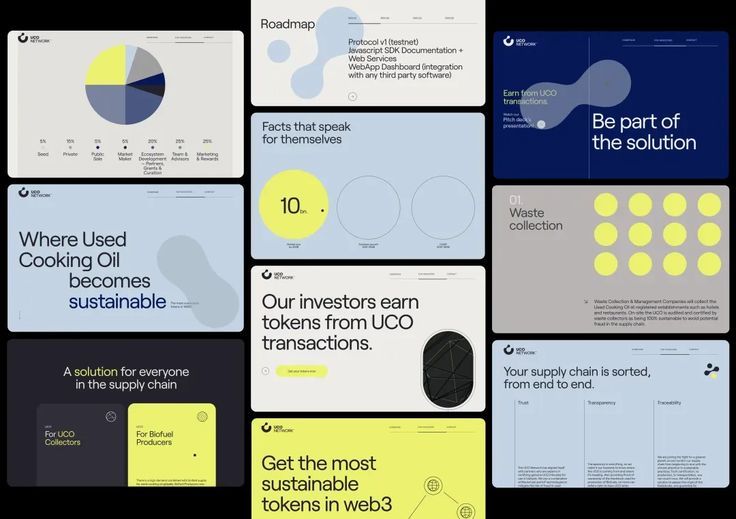 The design employs a clean, modern, and professional aesthetic typical of SaaS or Web3 platforms, utilizing ample white space and clear data visualizations. The visual language is highly structured, relying on simple geometric shapes and a limited color palette to convey trust and innovation. The overall feel is organized, transparent, and focused on presenting complex information in an accessible manner.
