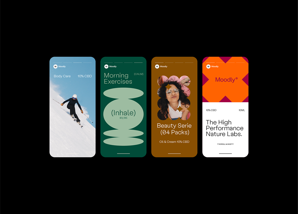 This design utilizes a clean, high-contrast aesthetic with vibrant accent colors to present product or service options. The visual language is modern and purposeful, effectively blending natural imagery with clear typography to convey a sense of wellness and quality.