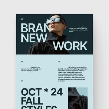 This is a highly structured and minimalist editorial graphic utilizing high contrast between dark backgrounds and crisp white typography. The design employs a strong sense of mystery and sophistication to present seasonal collection information in an organized, clean format.