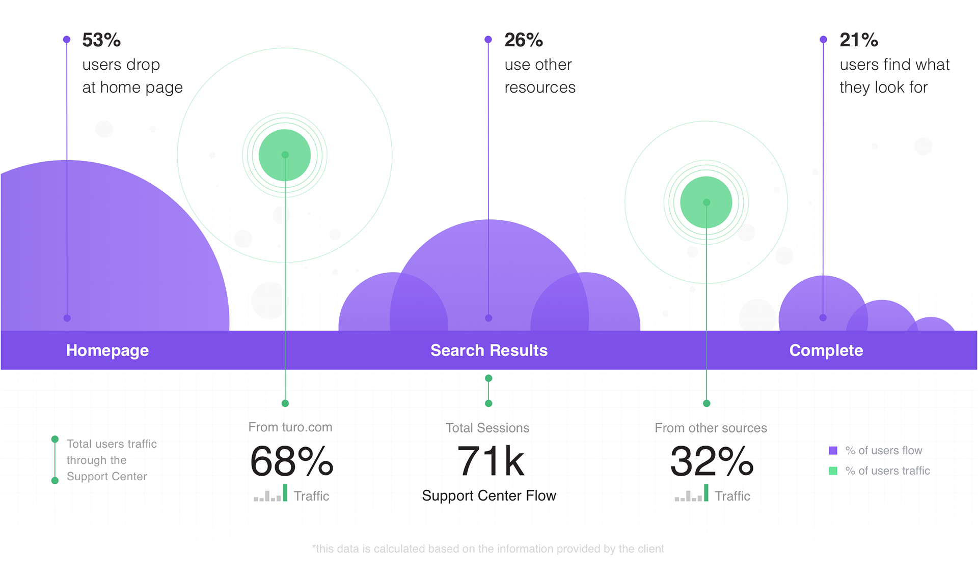 This infographic uses a clean, segmented horizontal layout to visualize user flow and drop-off rates across different stages. The design relies on distinct shades of purple to segment the data, creating a clear and analytical visual narrative. The overall feel is professional, structured, and highly informative.