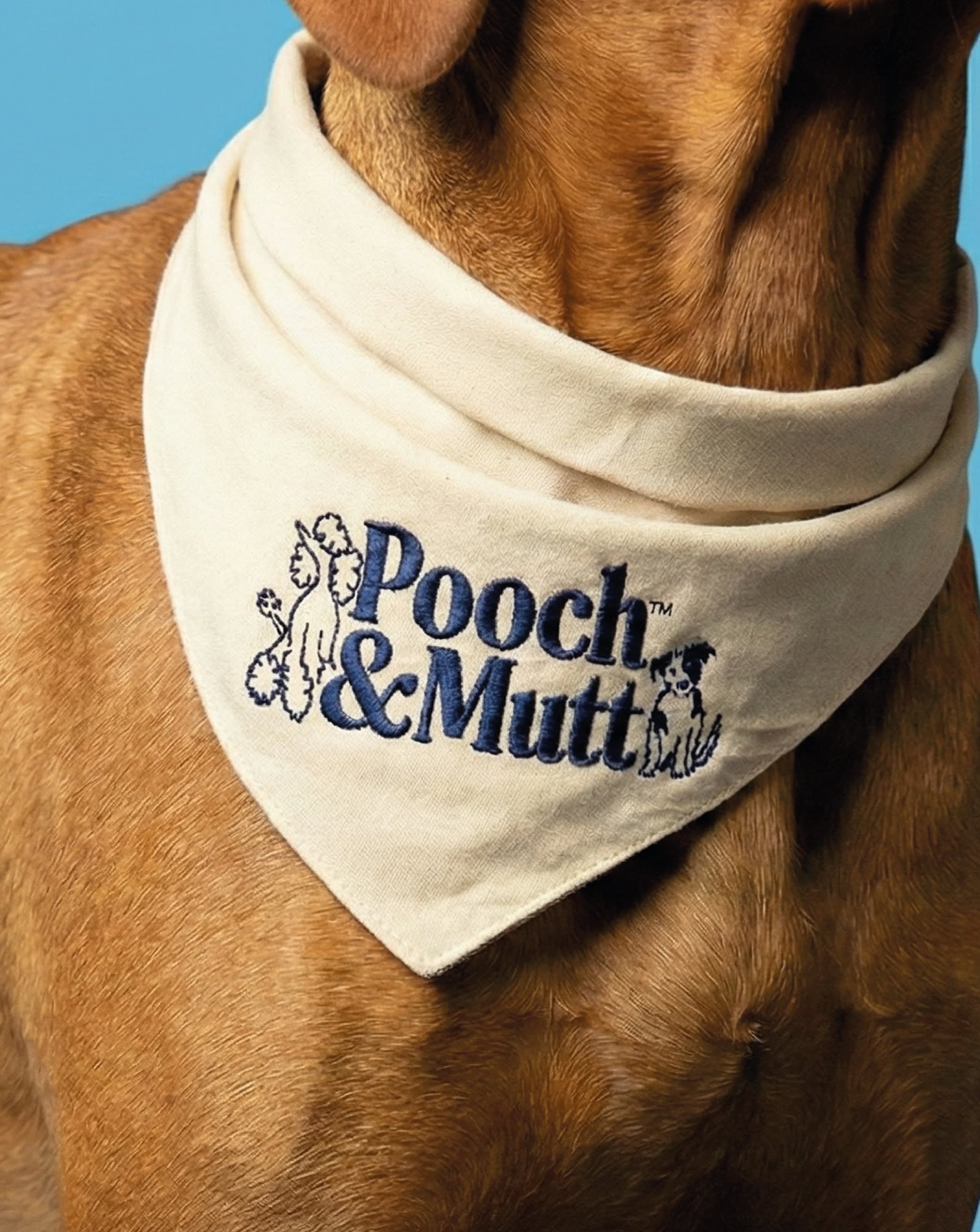 This image showcases a soft, cream-colored fabric accessory being worn by a dog, emphasizing comfort and casual pet ownership. The visual language is clean and natural, utilizing soft textures to create a warm and inviting aesthetic perfect for lifestyle branding.