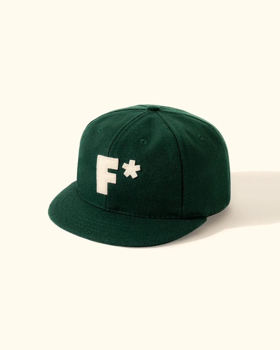 This image features a simple yet striking piece of casual apparel, utilizing deep, saturated green fabric contrasted sharply by clean white embroidery. The design speaks to minimalist streetwear aesthetics, offering a subtle nod to branding through simple typography and a classic utility item.