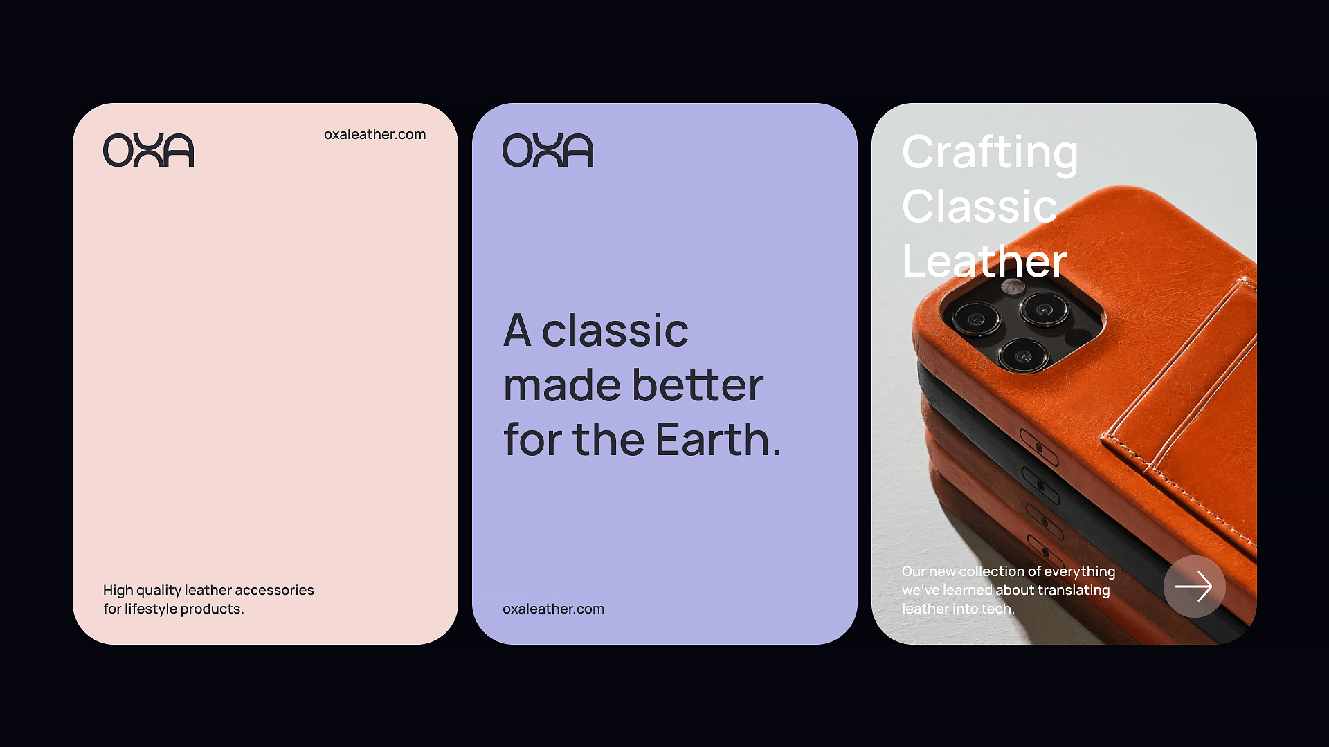 The design employs a clean, minimalist aesthetic with soft pastel tones and ample white space, suggesting a focus on premium, natural materials. The layout is modular and balanced, using simple typography to convey a message of quality and environmental consciousness.