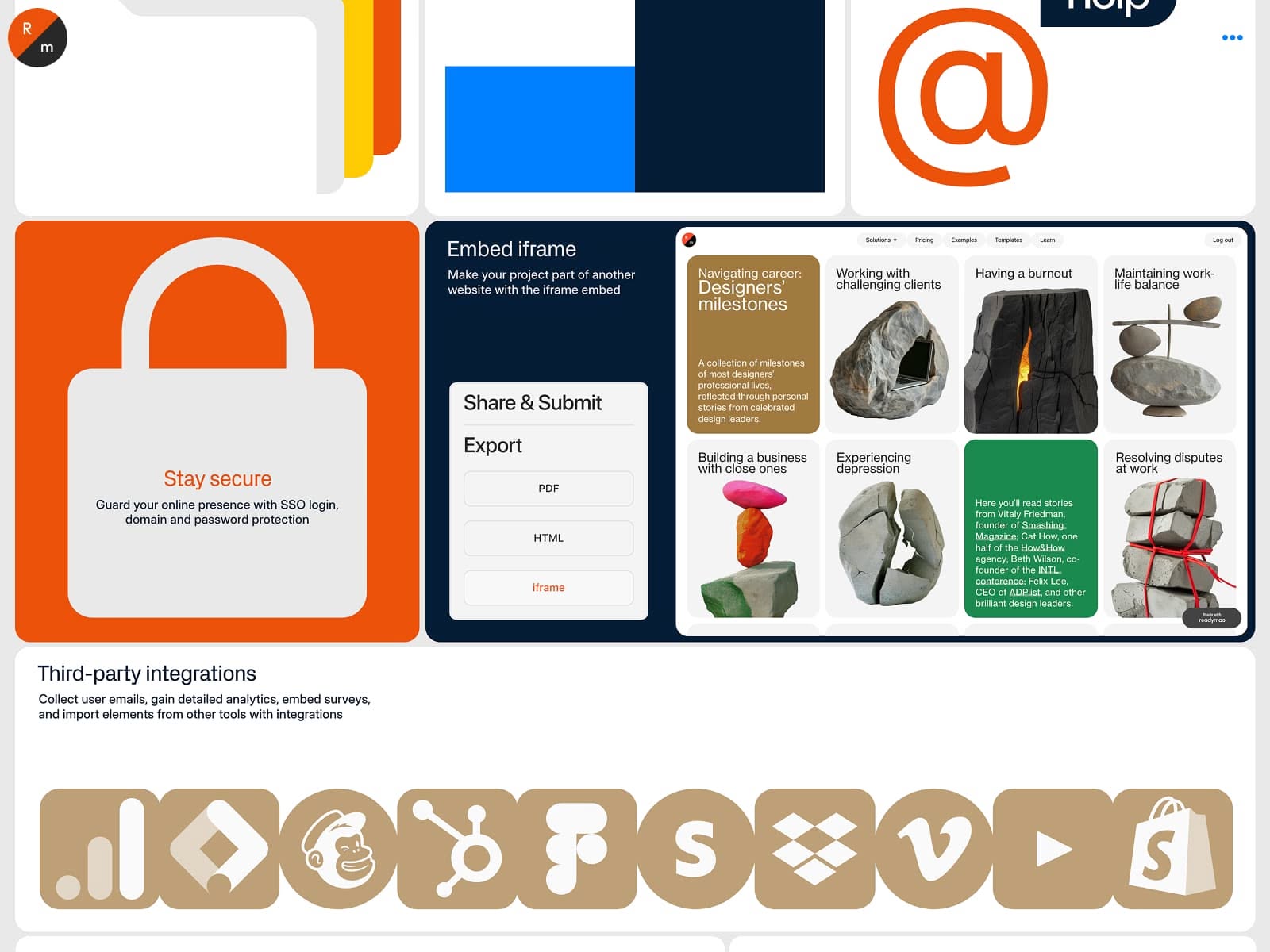 The interface exhibits a clean, modern flat design aesthetic characterized by clear sectioning and strong visual hierarchy. The layout is highly functional, utilizing ample white space and distinct color blocks to guide the user through various features. The overall feel is professional, organized, and trustworthy.