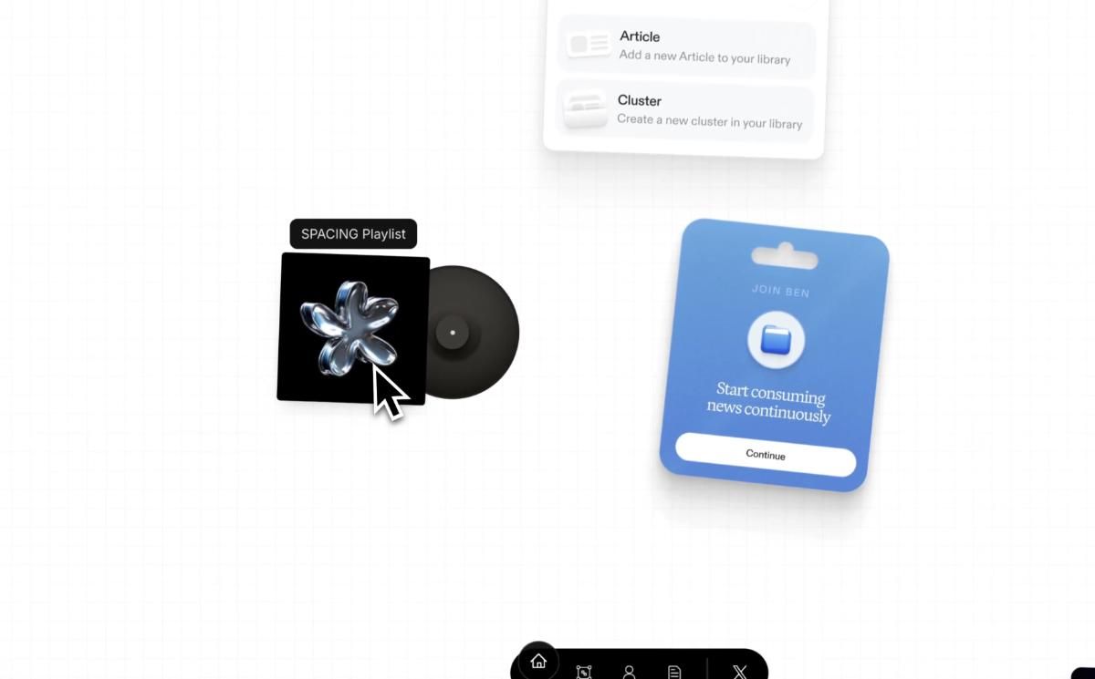 This image showcases a clean, modern user interface design emphasizing clarity and organization through card-based components. The visual language is minimalist, utilizing ample negative space and a simple hierarchy of text and icons to guide the user through various content functions. The design feels professional, structured, and highly functional.