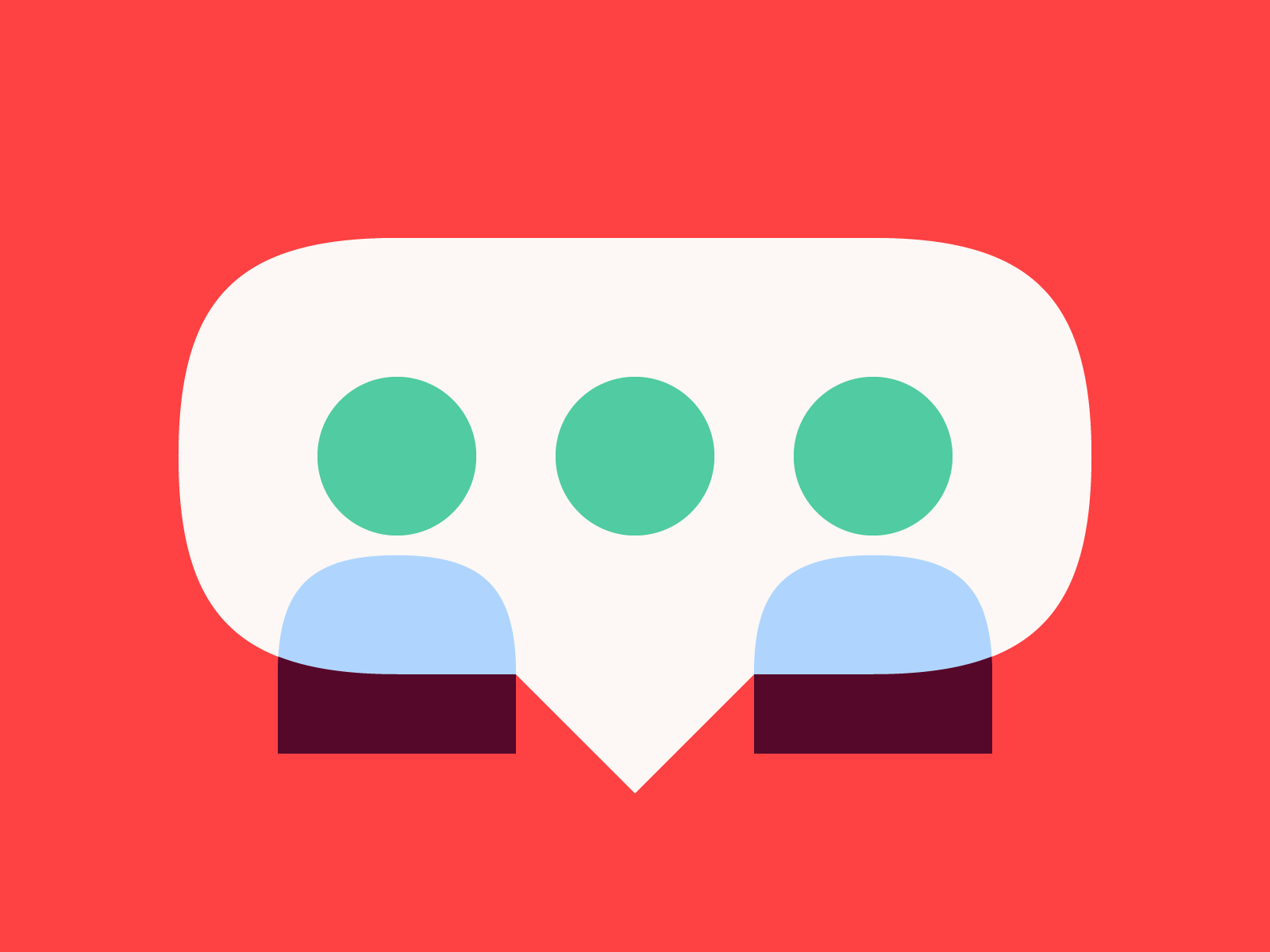 This design utilizes a clean, flat vector style to represent multiple user profiles or a group interaction within a speech bubble shape. The visual language relies on simple geometric forms and a controlled color palette to convey clarity and modernity.