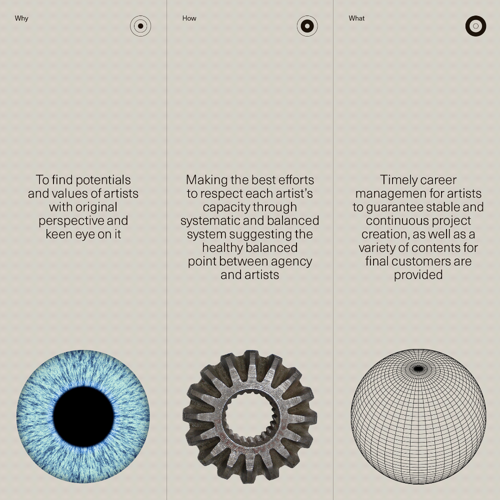 The image presents a clean, minimalist, and conceptual design layout using a tripartite structure to explore 'Why', 'How', and 'What'. It employs a muted, earthy color palette combined with stark white space to create a sophisticated and analytical feel.