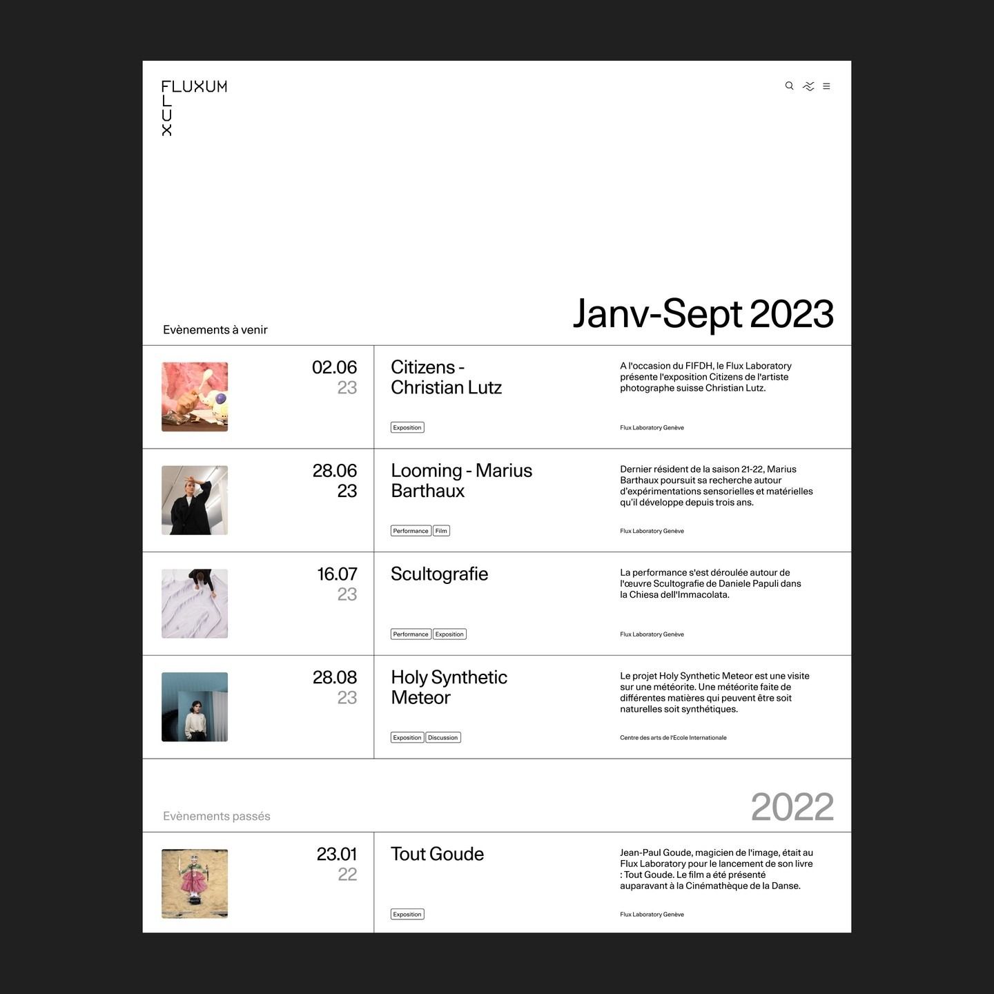 This design utilizes a stark, high-contrast visual language dominated by black and white to present organized event scheduling. The aesthetic is highly minimalist, focusing entirely on readability and functional organization for a professional calendar or program.