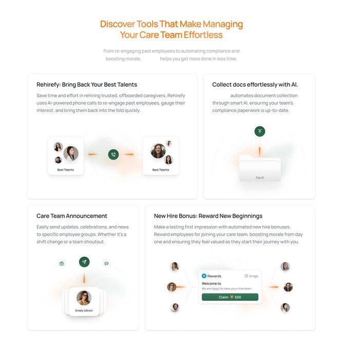 The image presents a clean, modern, and professional set of feature callouts designed to showcase software capabilities. It uses a light background with subtle, connected visual elements (lines and icons) to illustrate processes, giving it a sense of automation and efficiency.