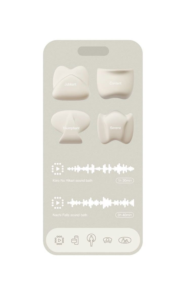 The image displays a minimalist, light-toned electronic device interface, likely for a personal care or wellness product. The design emphasizes clean lines, subtle gradients, and clear iconography to convey functionality in a serene manner.