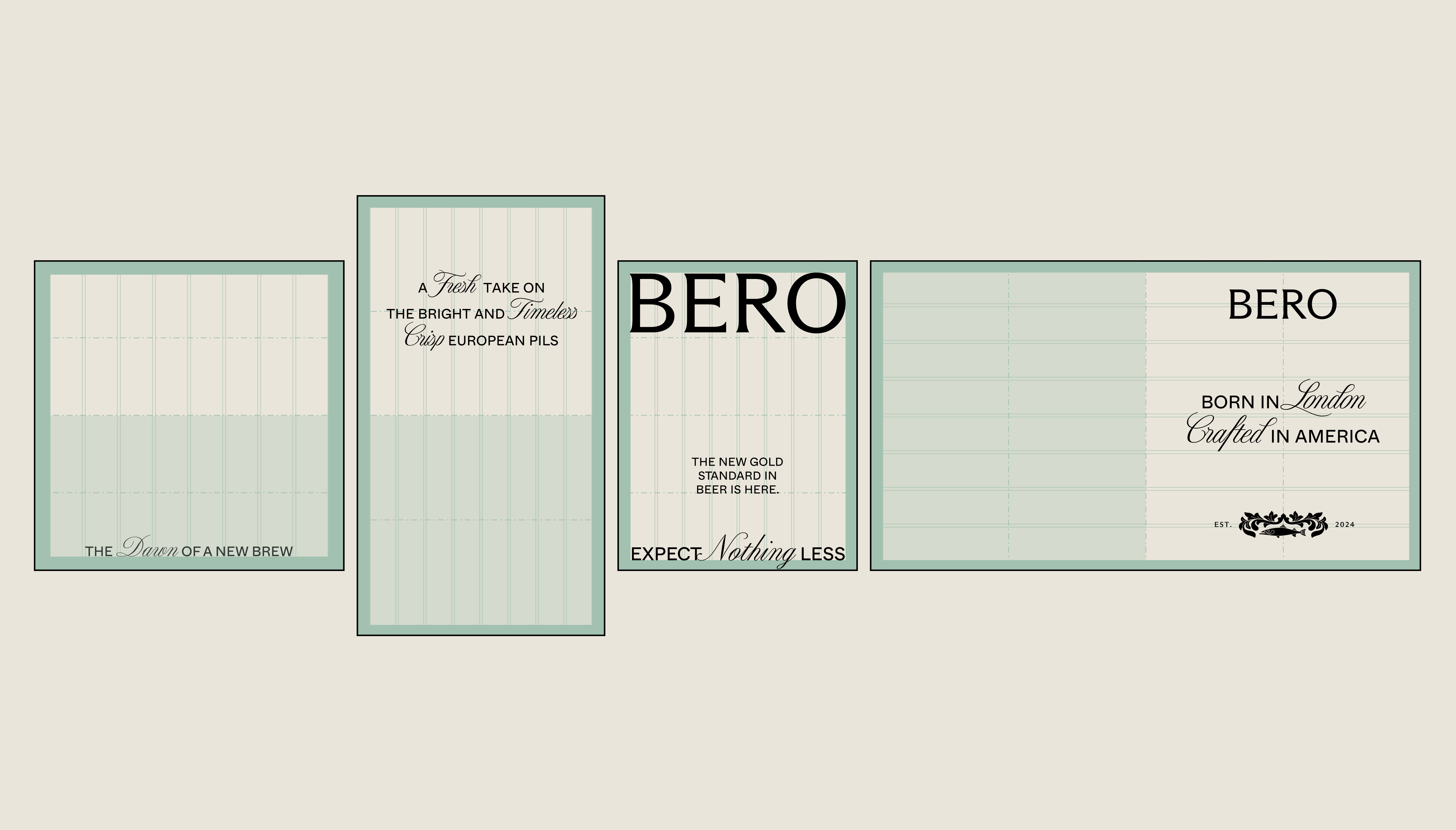This design employs a clean, minimalist aesthetic characterized by generous use of negative space and a restrained color palette. The visual language is sophisticated and relies on simple typography and subtle, cool tones to convey a sense of premium quality and modernity.