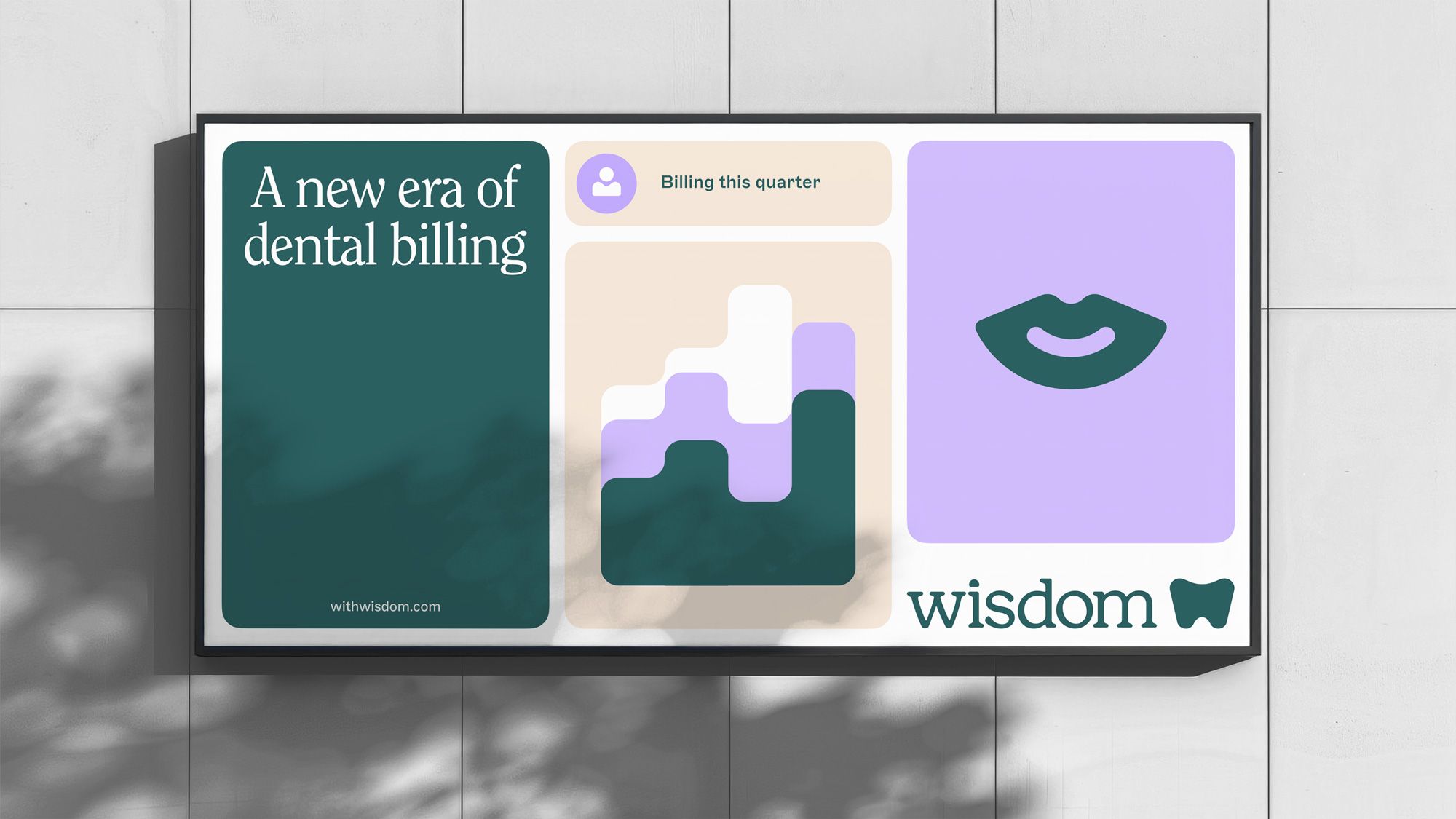 The design features a clean, modern, and professional aesthetic using a muted color palette dominated by deep teal/green and soft lavender. The layout is structured with distinct, card-like sections to present information clearly, suggesting a focus on modern digital services.