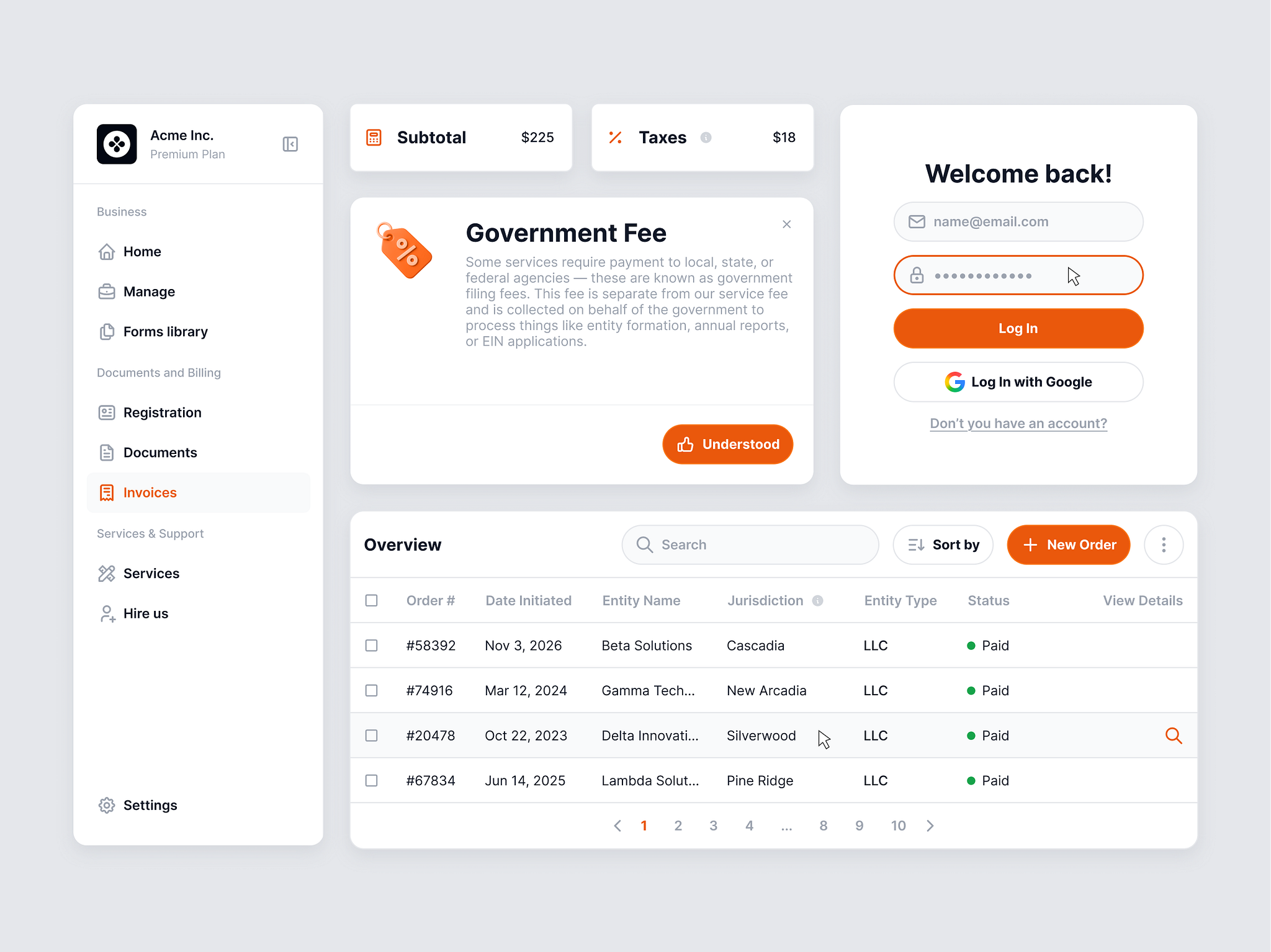 This interface features a clean, modern, and highly functional design typical of professional SaaS applications. The visual language relies heavily on ample white space and subtle gray tones to create a sense of order and professionalism. The layout is organized using clear cards and tables, ensuring that complex financial data is presented in an easily digestible manner.