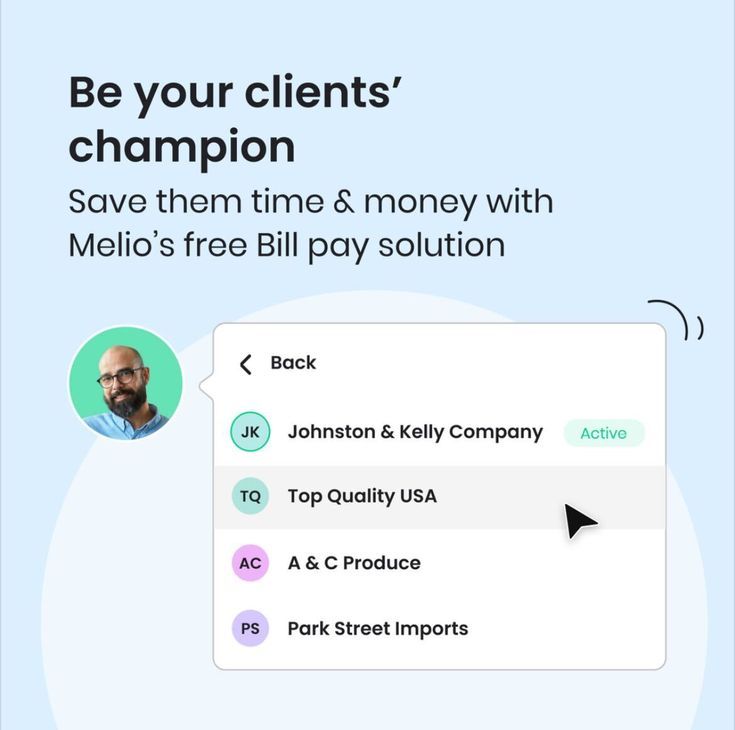 The image presents a clean, light-themed interface design promoting a business solution. It uses ample white space and soft pastel accents to convey a professional, approachable, and modern feel. The layout is simple, focusing on a clear headline followed by a list of client names.