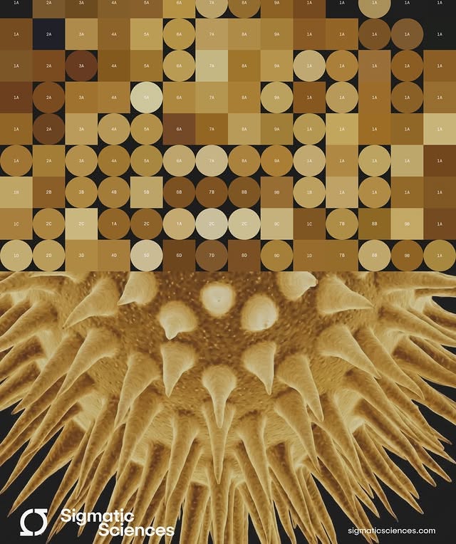 This image is a detailed scientific illustration depicting cellular structures, combining organized grid patterns with organic, fibrous textures. The visual language is precise and technical, emphasizing microscopic detail and structural integrity through layered rendering.