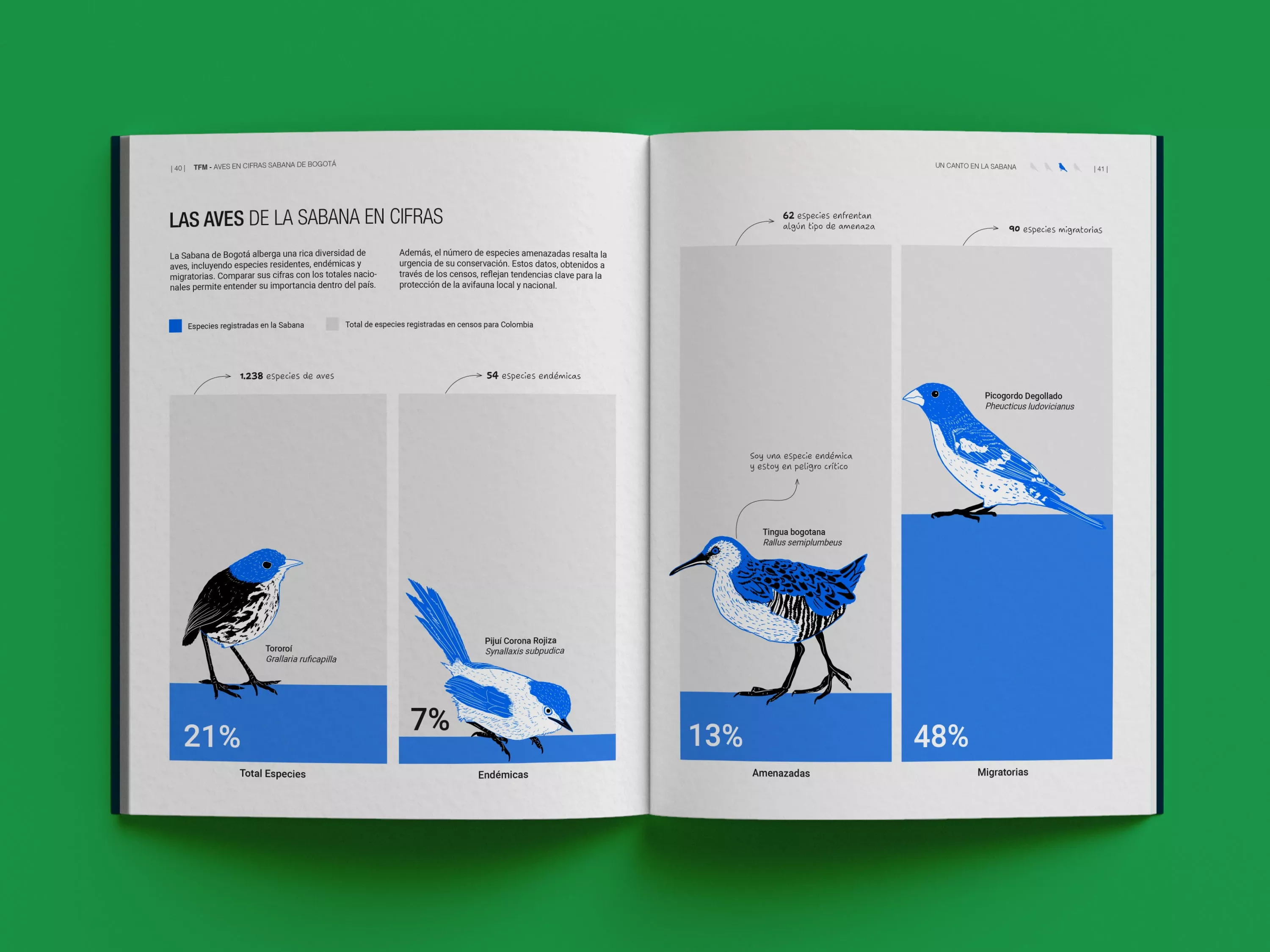 The image presents a clean, informative, and modern infographic spread detailing bird species distribution. It uses a clear hierarchy of data visualization, combining icons/illustrations with percentage callouts against a muted background.
