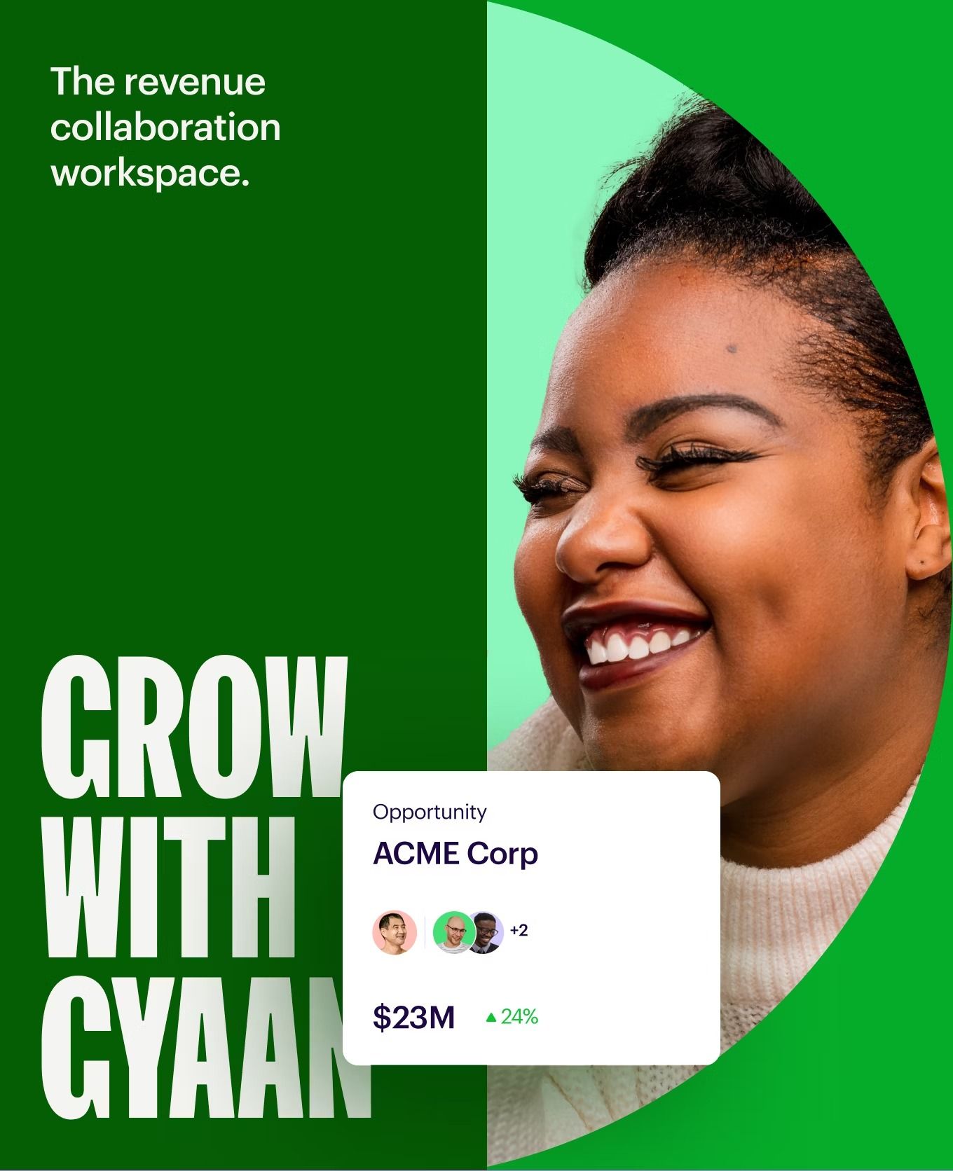 A vibrant, modern SaaS marketing design featuring bold typography and a dynamic color-blocked layout with a curved photographic element. The composition combines professional business messaging with contemporary design aesthetics, emphasizing growth and collaboration through visual hierarchy and strategic use of white space.
