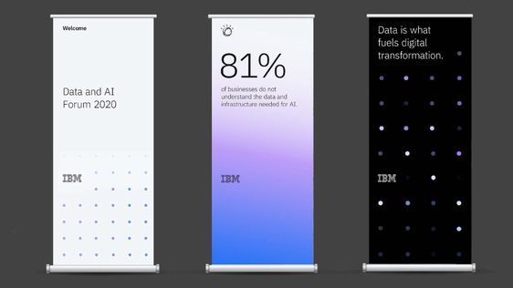 A sophisticated three-panel layout presenting a corporate narrative structure with bold typography and minimalist design. The design uses stark contrast between white text and black backgrounds, creating a clean, modern aesthetic that emphasizes hierarchy and sequential storytelling. The layout suggests a presentation or website framework for organizational communication.