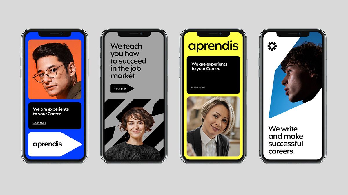 This is a clean, modern tri-panel layout using muted earth tones and soft photography to convey professional aspiration. The design utilizes negative space effectively, pairing aspirational imagery with clear, compelling calls to action for career development.