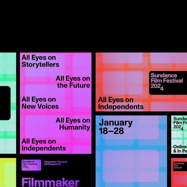 This design utilizes a striking color-blocked grid system to organize diverse film categories and festival announcements, creating a highly structured yet vibrant visual hierarchy. The clean lines and bold color transitions lend a modern, cinematic, and authoritative feel to the promotional material.