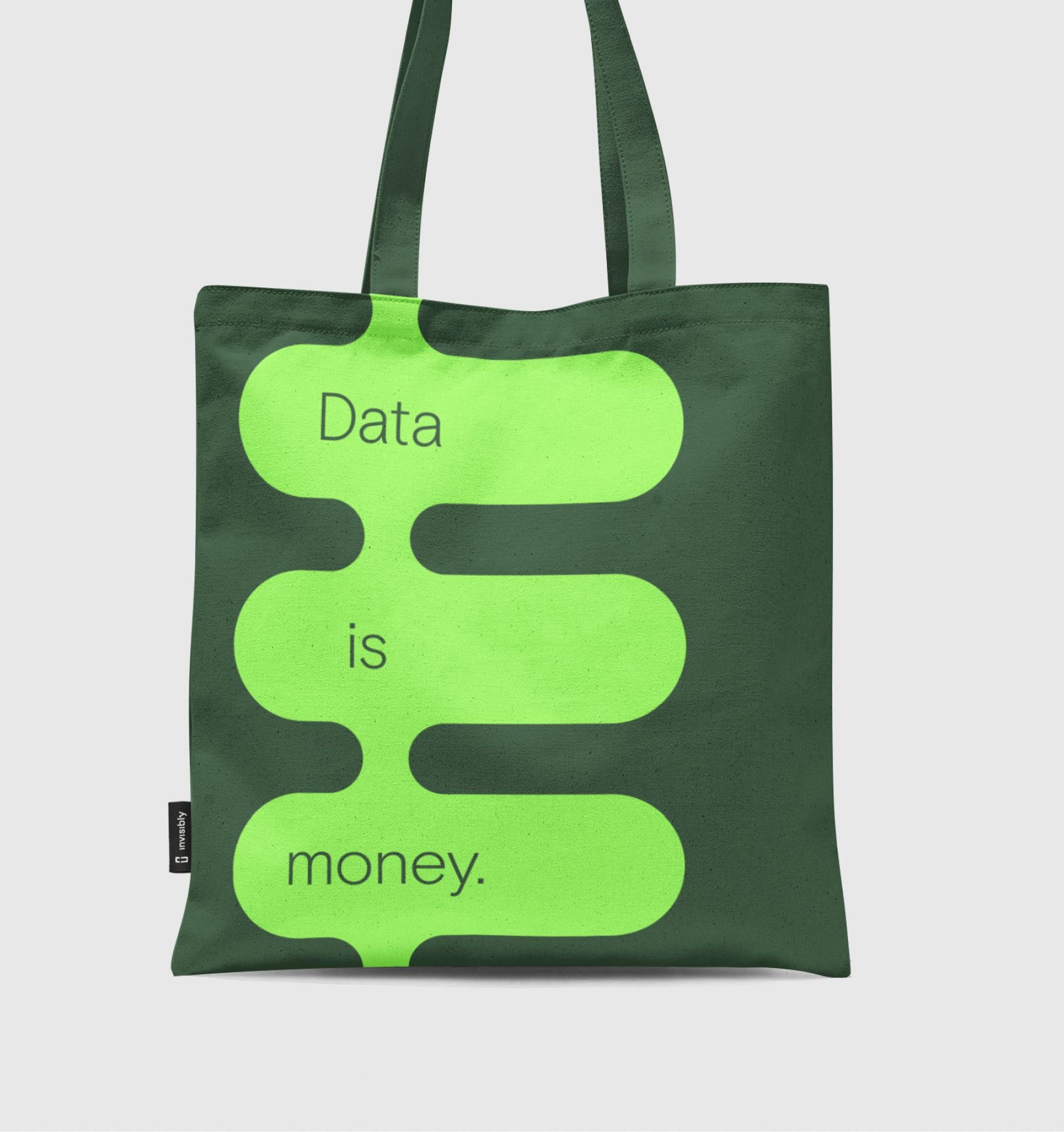 This design uses a minimalist, bold graphic approach to convey a simple statement about data's value. The use of bright neon green against a deep, muted olive green creates high contrast and draws immediate attention to the core message.