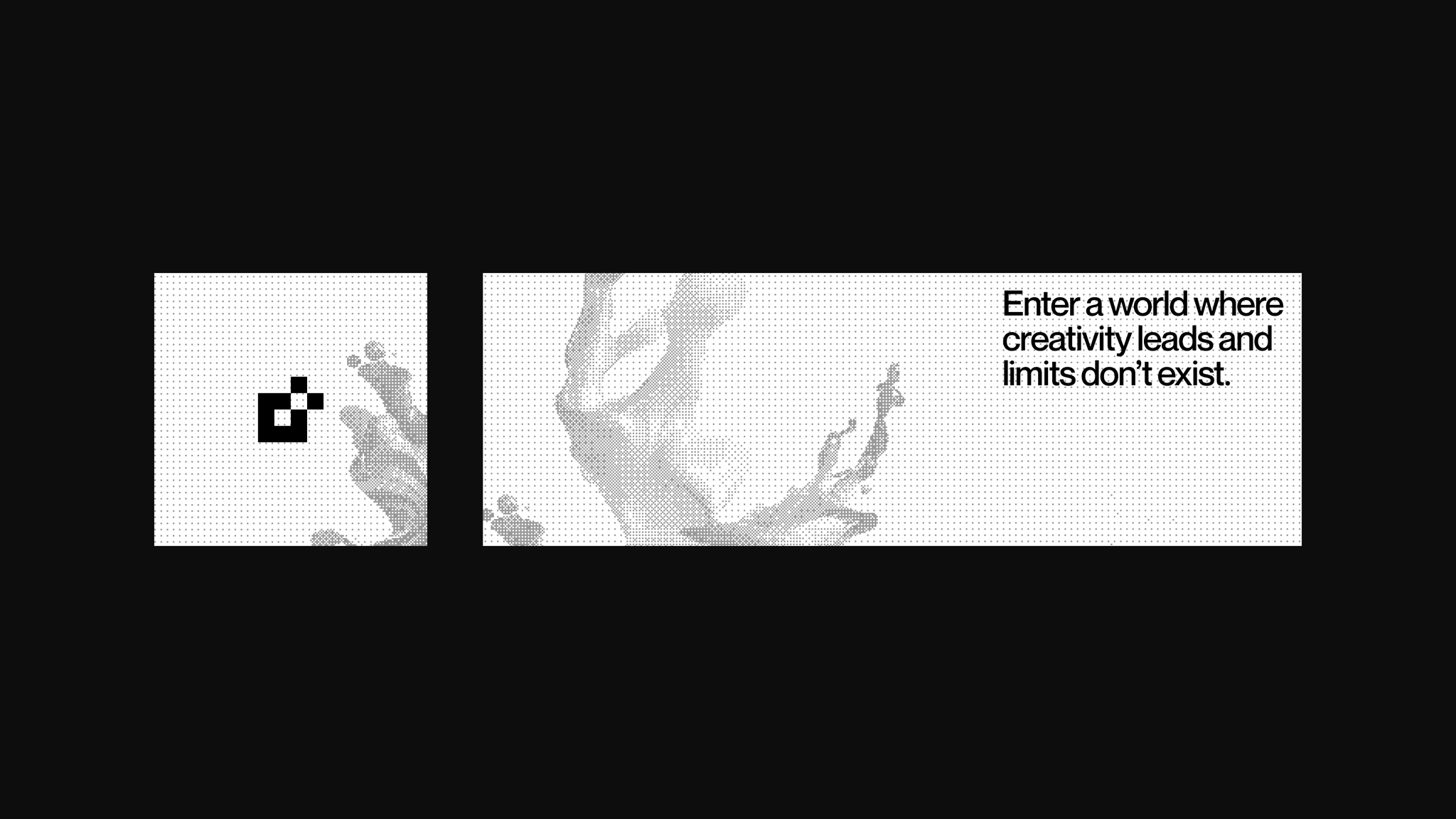 The image presents a stark, minimalist interface featuring two distinct visual elements against a dark background. The design relies on high contrast and subtle texture to convey a sense of abstract creativity or potential.