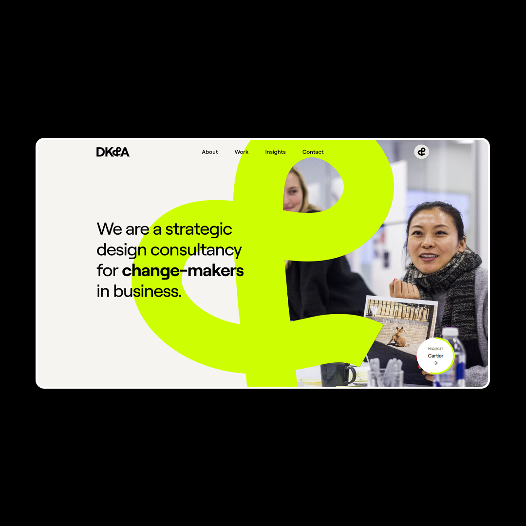 This design employs a clean, modern aesthetic balanced by a striking use of vibrant lime green as a focal graphic element. The visual language is professional yet energetic, using ample negative space to ensure clear communication of the consultancy's mission.