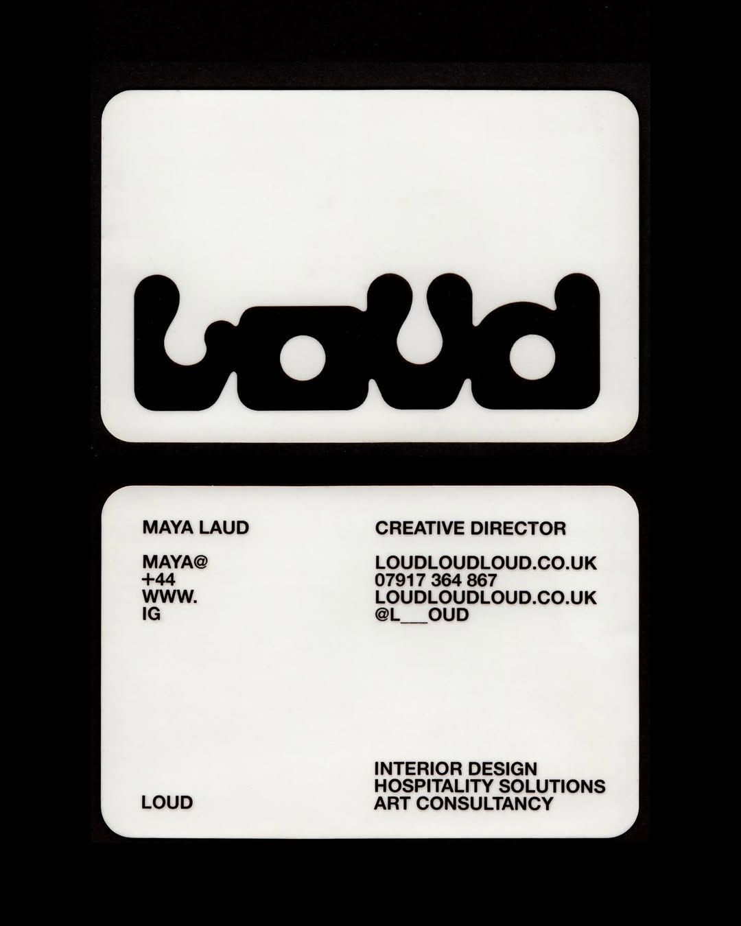 This image presents a minimalist and modern branding identity characterized by stark black-on-white contrast. The design relies heavily on clean lines and bold, sans-serif typography to convey a sense of professional, contemporary design expertise.