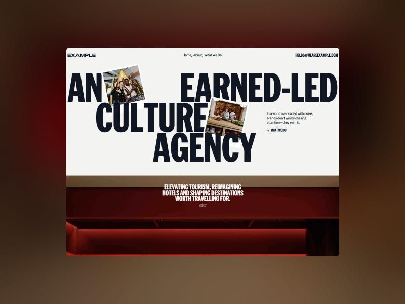 This design utilizes a clean, high-contrast layout with bold typography and warm earth tones to convey a sense of professionalism and grounded expertise. The visual language is modern yet sophisticated, effectively using negative space to highlight the core agency message and services.
