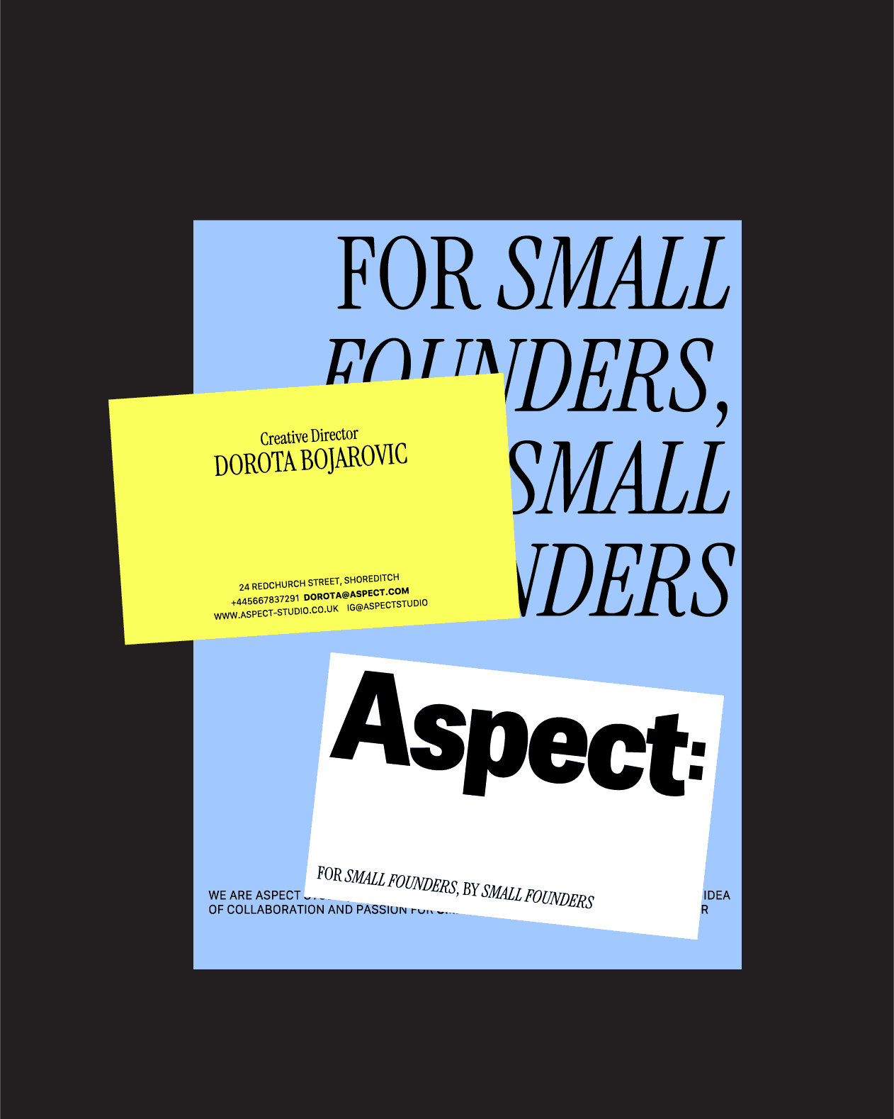 This design utilizes a clean, high-contrast visual language dominated by cool blues and stark black to convey professionalism and clarity. The layout is minimalist, relying on large typography and intentional negative space to establish a clear hierarchy between the main message and supporting details. The overall feel is modern, sophisticated, and focused.