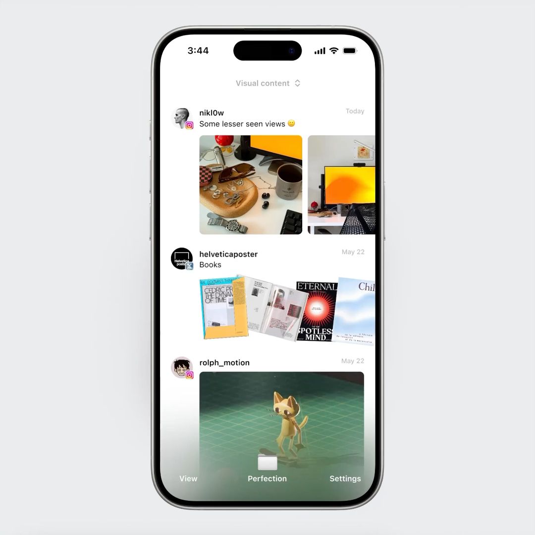 This image captures a close-up of a smartphone displaying a curated list of journals or articles, showcasing a clean, modern user interface. The design emphasizes readability and a minimalist aesthetic with high-contrast elements.