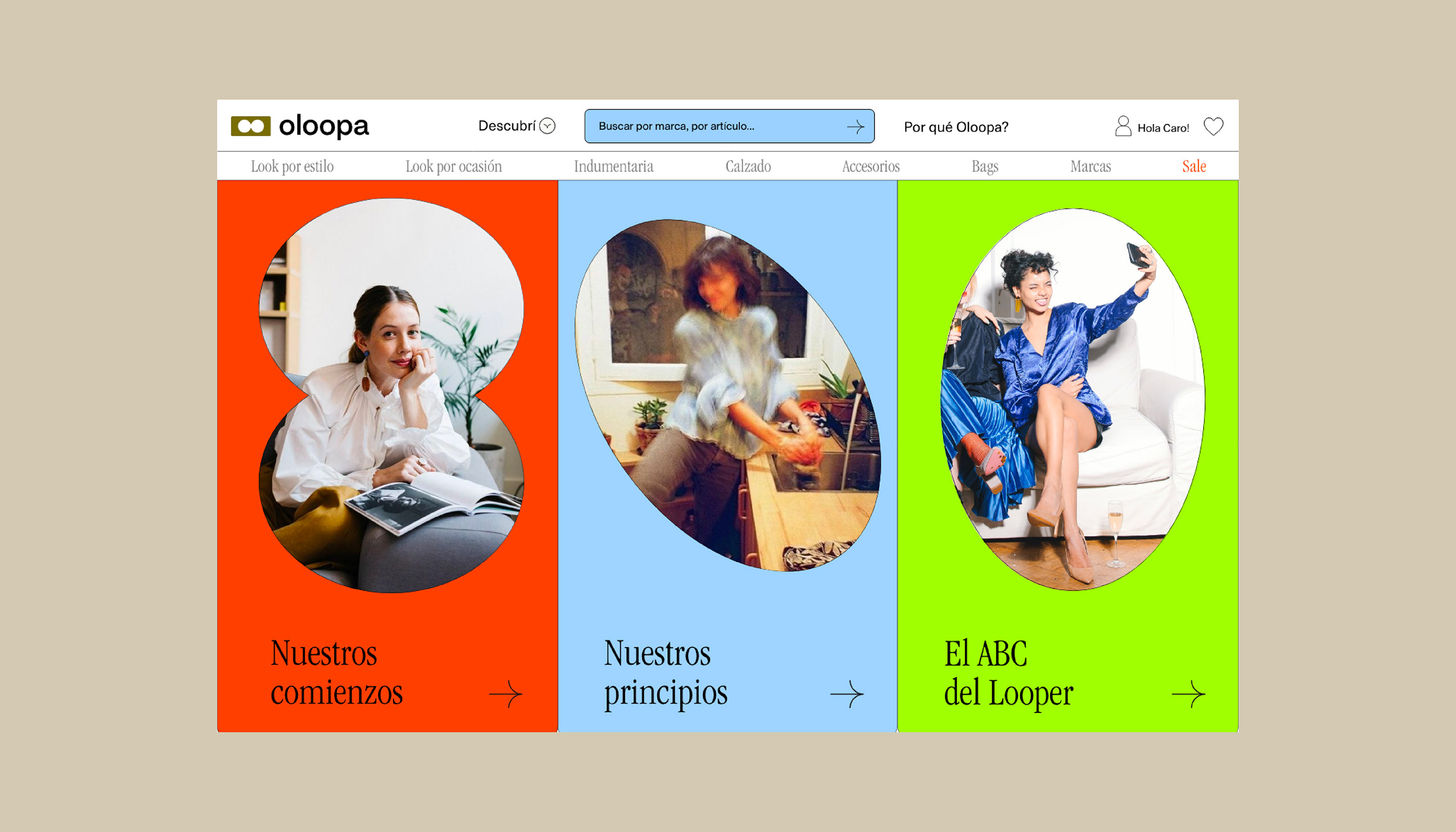This interface employs a clean, modern visual language using strong color blocking and ample negative space to organize various content views. The design emphasizes clear hierarchy and easy navigation through distinct, labeled modules.
