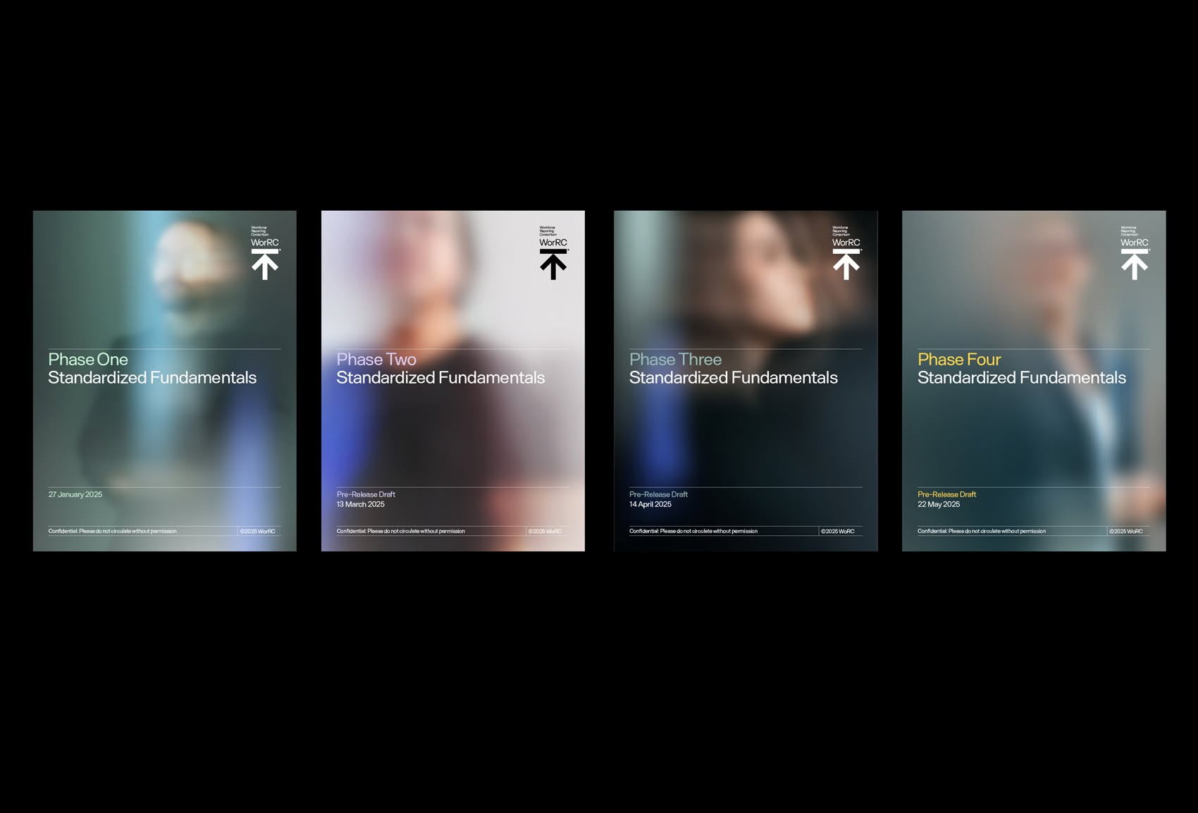 The image displays a series of four distinct, minimalist presentation slides or cards, characterized by a dark, muted color palette and subtle gradients. The design emphasizes clean lines, ample negative space, and a professional, corporate aesthetic suitable for educational or foundational content.