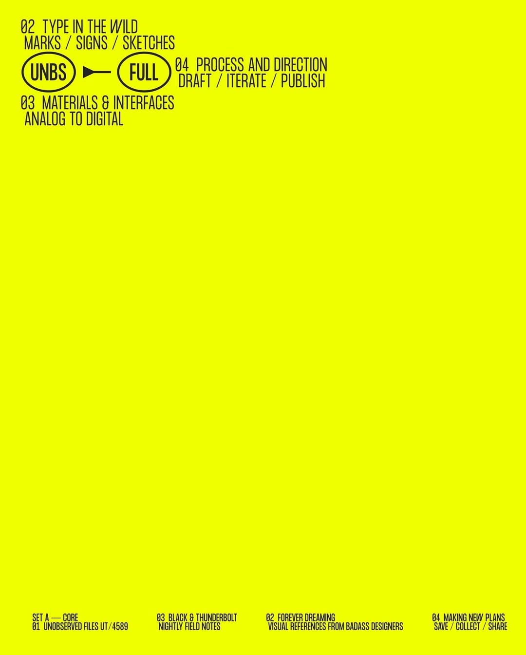 The image presents a stark, high-contrast visual structure typical of technical documentation or a design process guide. It uses bold typography and clear segmentation to list various stages or components, conveying a sense of systematic organization and direct instruction.