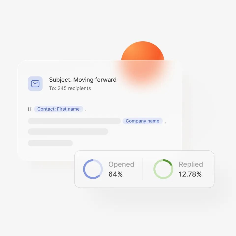 The image presents a clean, modern email interface design characterized by soft gradients and ample white space. The visual language is professional and minimalist, using subtle color accents to draw attention to key elements like engagement metrics.