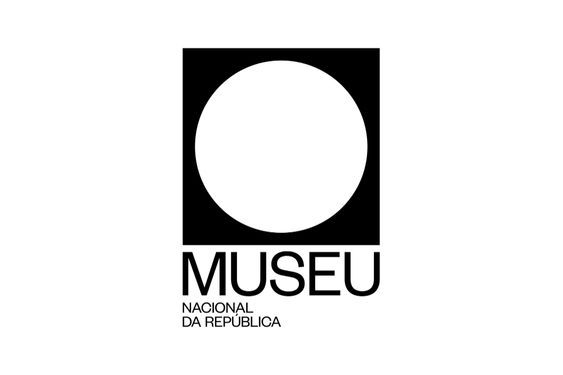 The design is minimalist and stark, relying on high contrast between black and white to create a strong, modern presence. It uses simple geometric shapes—a large circle within a black rectangle—to focus attention on the institution's name.