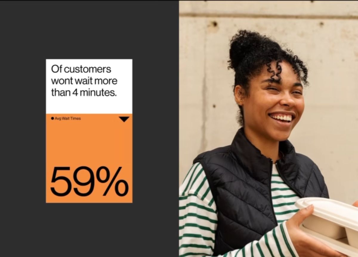 The image presents a clean, modern design focused on a statistic, using a strong orange accent against a dark background. The visual language is direct and data-driven, aiming to convey efficiency and customer satisfaction.