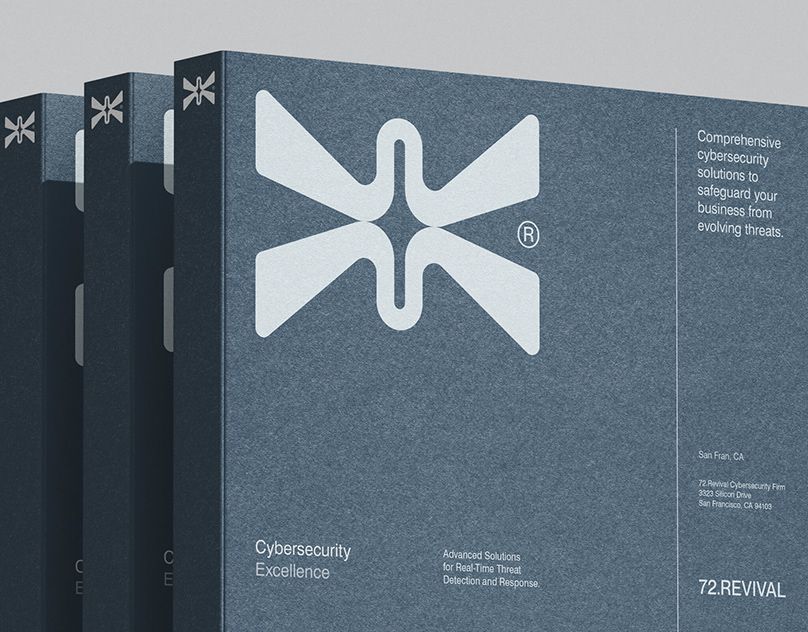 This design utilizes a minimalist and corporate aesthetic, relying heavily on monochromatic tones and clean lines to convey professionalism and security. The composition is structured through the vertical stacking of identical elements, creating a sense of solidity and established authority.