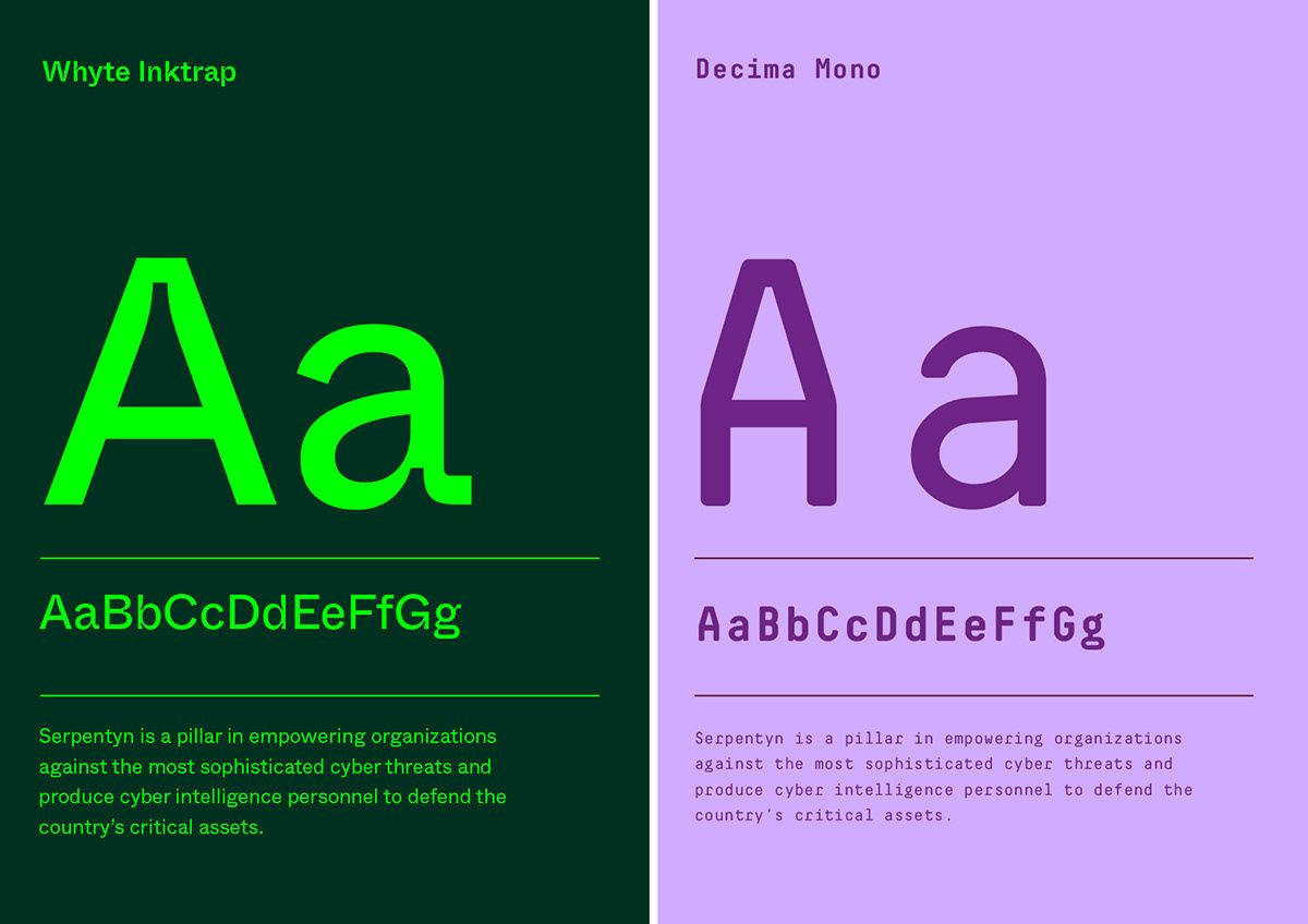 This design utilizes a striking dual-panel layout to juxtapose deep, organic greens with cool, vibrant purples. The visual language is clean and highly typographic, relying on large, customized lettering to establish a distinct, modern brand identity.