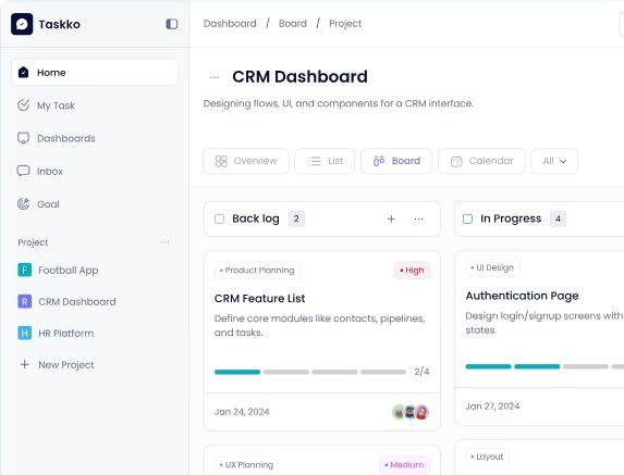 This image presents a clean, highly functional dashboard interface characterized by a standard two-column layout and clear information hierarchy. The visual language is minimalist, relying on ample white space to focus the user on task management and data.