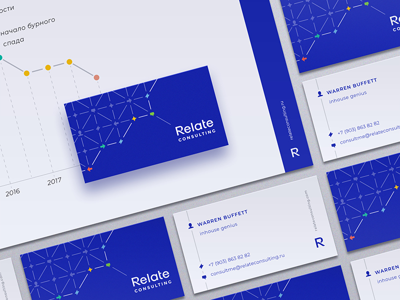 This design utilizes a clean, modern aesthetic centered around data visualization and corporate branding. The visual language relies heavily on geometric patterns and a cool blue palette to convey professionalism and analytical depth. The composition is highly structured, using card layouts and subtle gradients to organize complex information clearly.