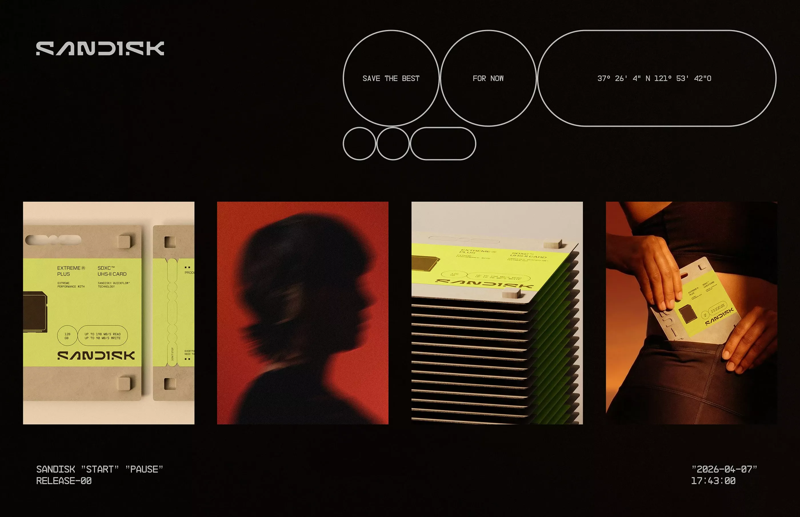 This visual presentation employs a minimalist and high-contrast aesthetic, utilizing stark monochrome backgrounds to highlight the texture and form of technological products. The design language is precise and modern, balancing clean graphic elements with dramatic photographic silhouettes to create a sophisticated and somewhat mysterious mood.