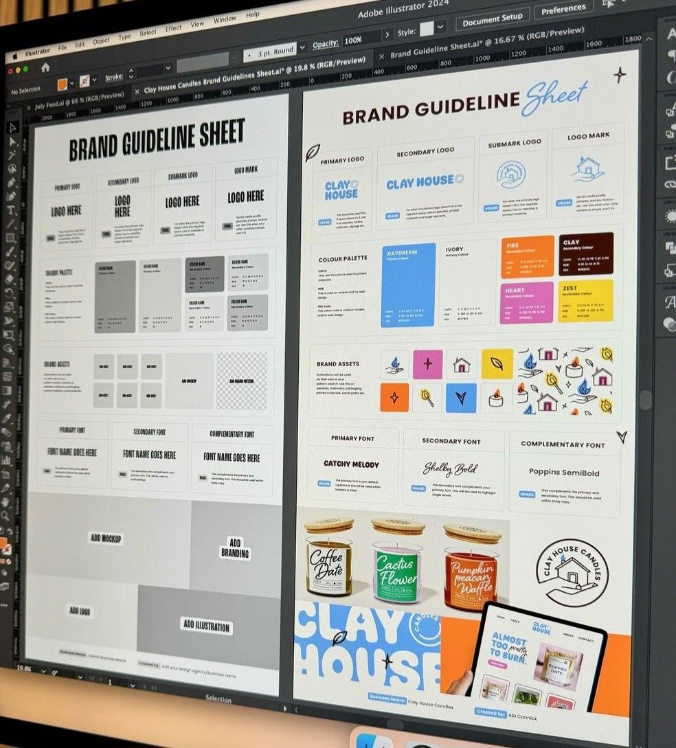 This is a highly structured and professional template for creating brand guidelines, emphasizing clarity and systematic organization. The design utilizes ample white space and clear sectioning to ensure that complex branding information is presented in an easily digestible format. The visual language is clean, modern, and functional.