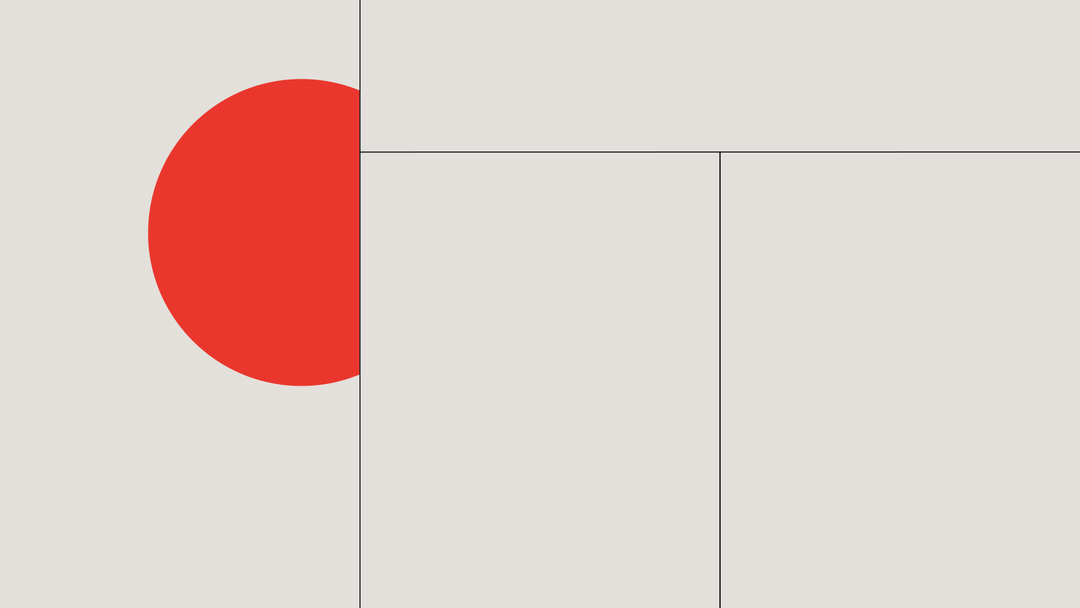 This image exemplifies clean, geometric minimalism, utilizing strong color contrast between a vibrant red element and neutral gray space. The design relies on sharp lines and simple shapes to create a precise, balanced composition.