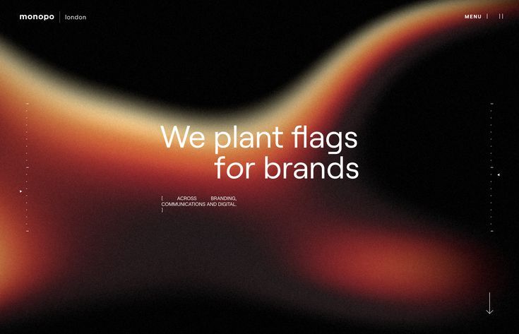 A sophisticated, dark-themed design agency website featuring bold serif typography and minimalist layout. The design emphasizes brand strategy and identity services through layered text elements and strategic use of accent colors, creating a premium and contemporary aesthetic.