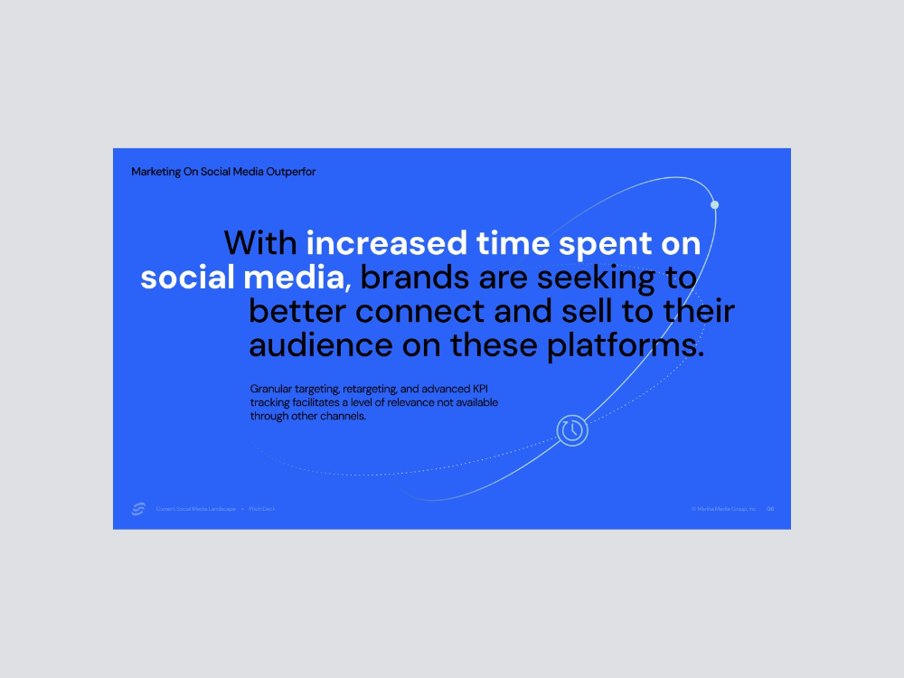This is a clean, professional infographic slide utilizing a strong blue gradient palette to convey trust and digital connectivity. The design relies on ample white space and a subtle curved line graphic to visually link the concepts of audience connection and marketing strategy.