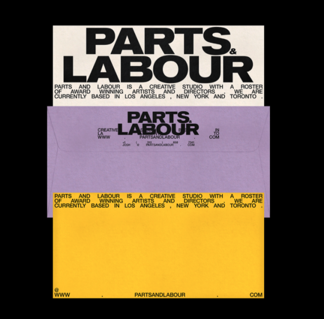 This design utilizes stark contrast and strong typographic hierarchy to establish a professional yet edgy creative brand identity. The visual language is minimalist, relying on bold block text and negative space to convey a sense of industrial sophistication. The overall feel is modern, artistic, and clearly focused on collaboration.
