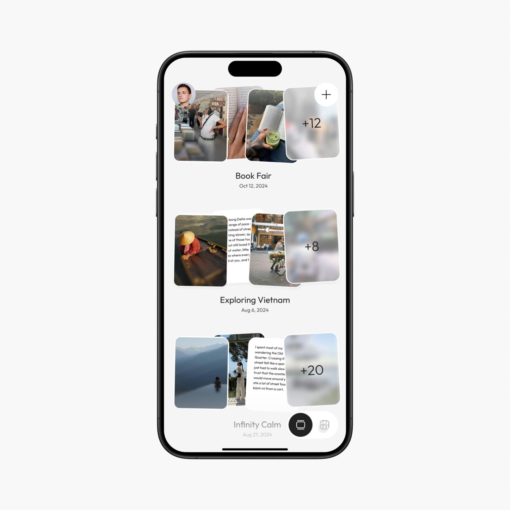 The image displays a clean, modern mobile application interface featuring a card-based layout for curated content. The design emphasizes white space, subtle gradients, and clear iconography to present information in an engaging yet minimalist manner.